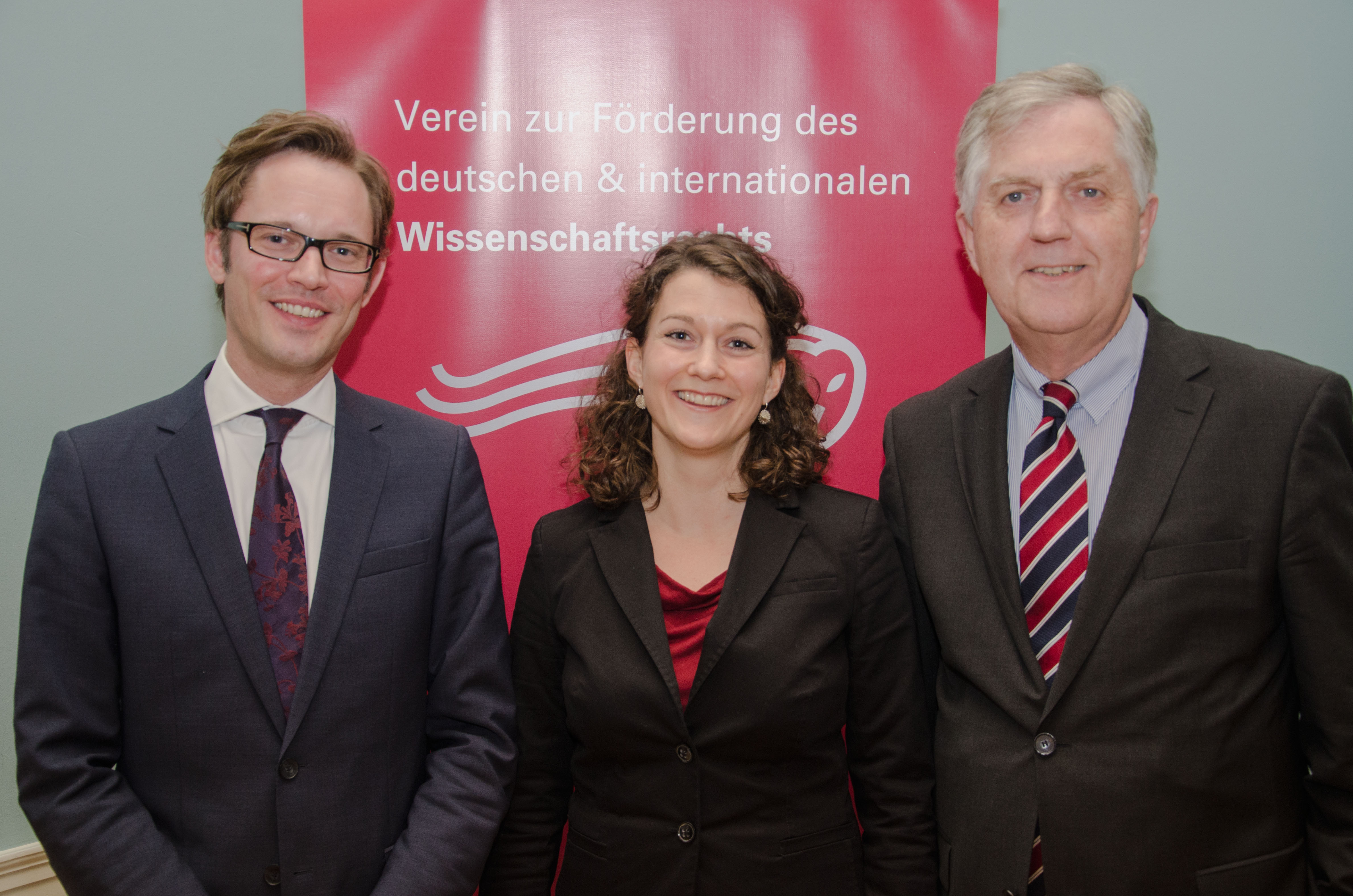 Prof. Pallme König (Vorsitzender des Vereins zur Förderung des deutschen & internationalen Wissenschaftsrechts), PD Dr. Margrit Seckelmann (Preisträgerin), Max-Emanuel Geis (Rechtswissenschaftler und ordentlicher Professor für Öffentliches Recht an der Friedrich-Alexander-Universität Erlangen-Nürnberg)